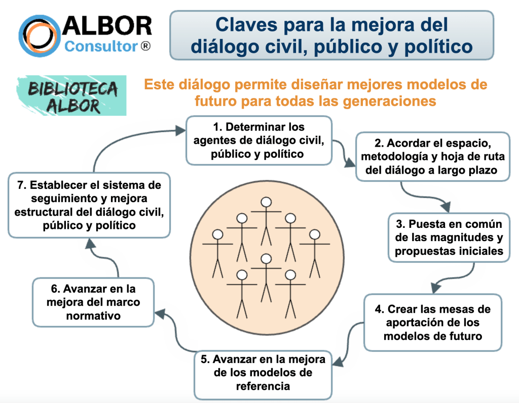 La sociedad civil y los partidos políticos tenemos los conocimientos, la experiencia, el talento, la diversidad y la capacidad, para diseñar mejores modelos estructurales en educación, sanidad, servicios sociales y pensiones, que permitan crear un futuro mejor para las personas de todas las generaciones. Lo único que tenemos que hacer es sentirnos corresponsables con esta realidad y sentarnos a dialogar con calma y determinación.